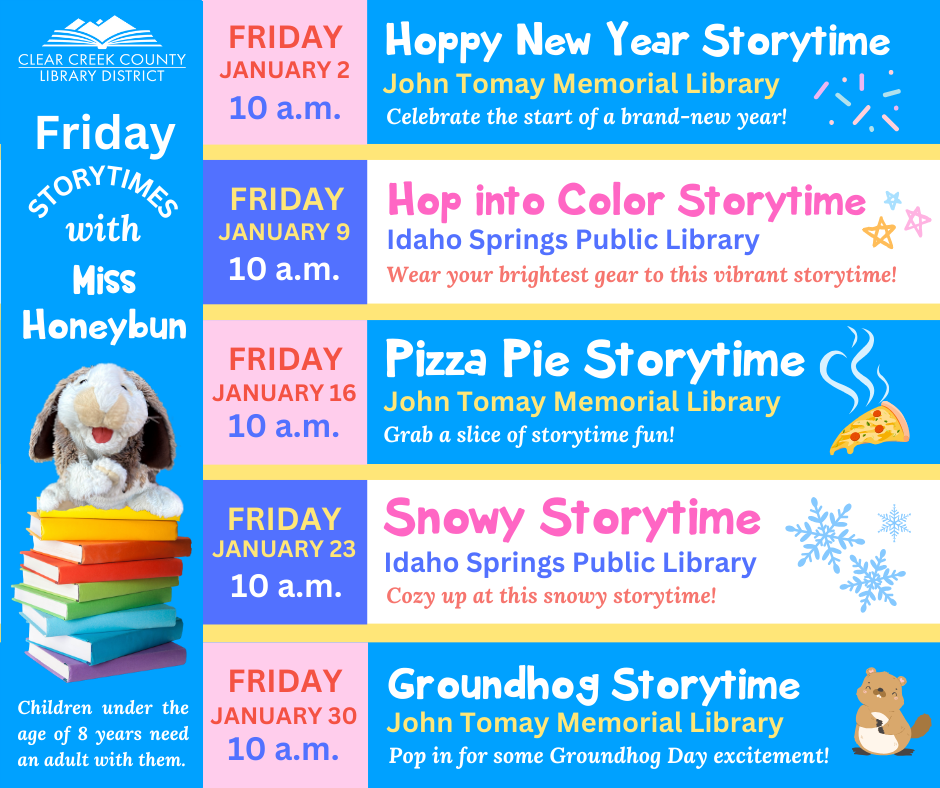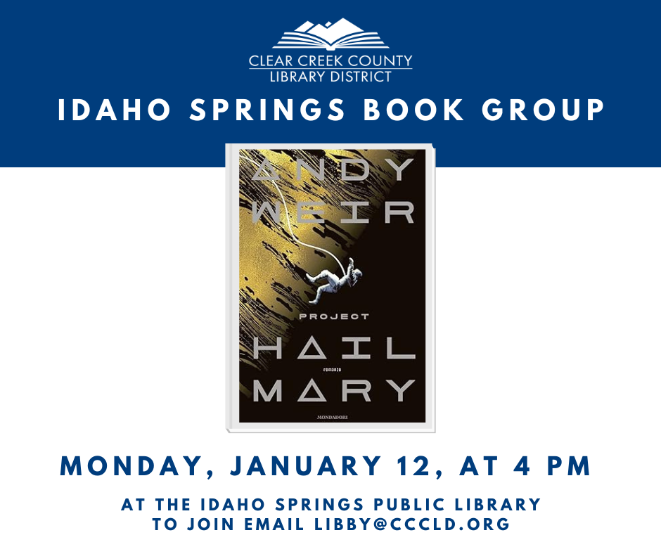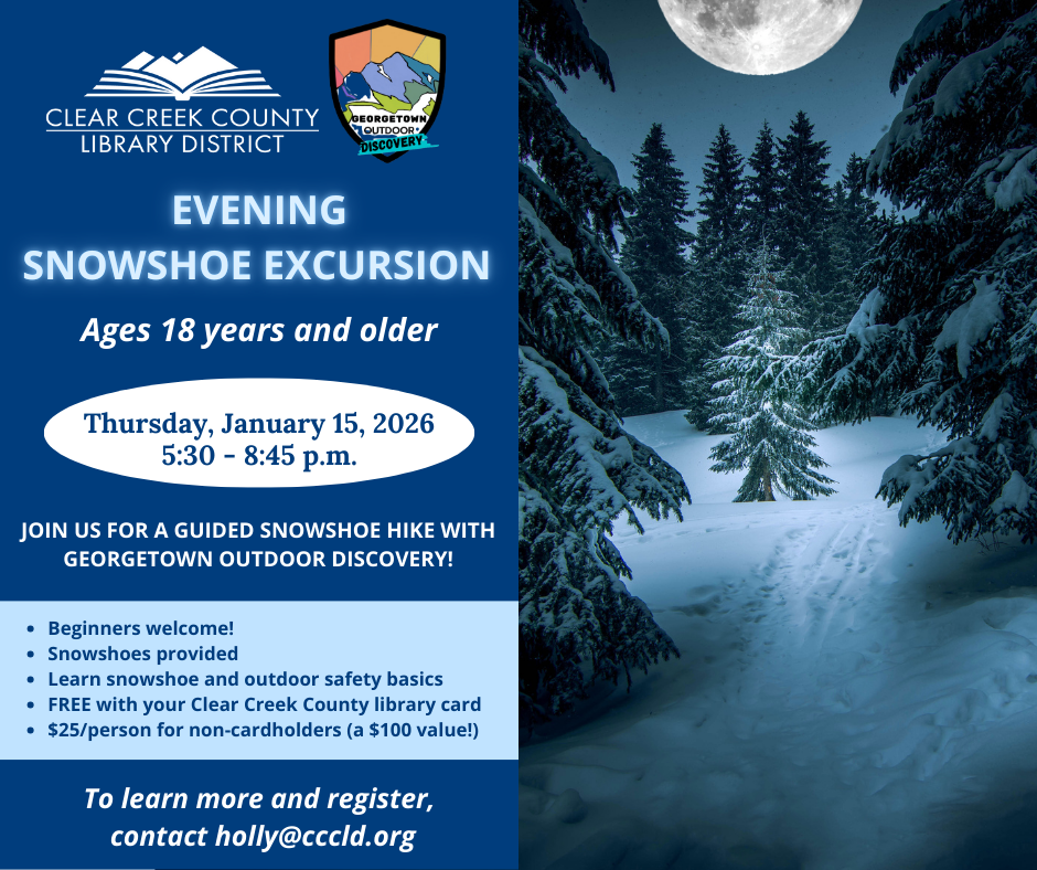 -Happy Holidays! All Clear Creek County Library branches will be closed Wednesday, December 24 – Friday, December 26.